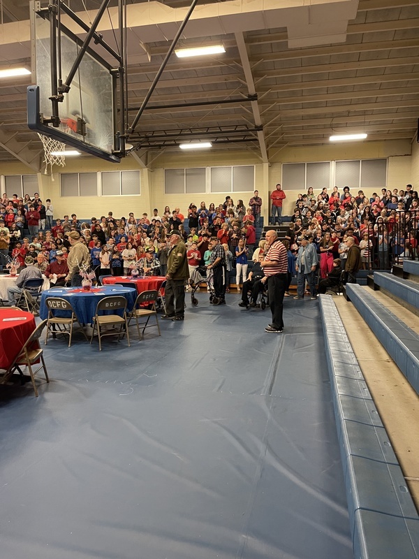 Student council performed most of the program but students also had a chance to hear from veterans with "The Ragged Old Flag" being recited and a special Thirteen fold ceremony being performed and explained. Along with the Pledge of Allegiance, the National Anthem was sung and TAPS was performed at the conclusion of the program. Spouses of Veterans were also recognized with a special poem and a red rose. We are very thankful for our veterans and are proud to honor them in this way every year. Thank you to everyone who had a part in making this day special for our students, staff, and veterans!