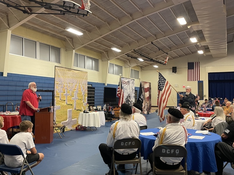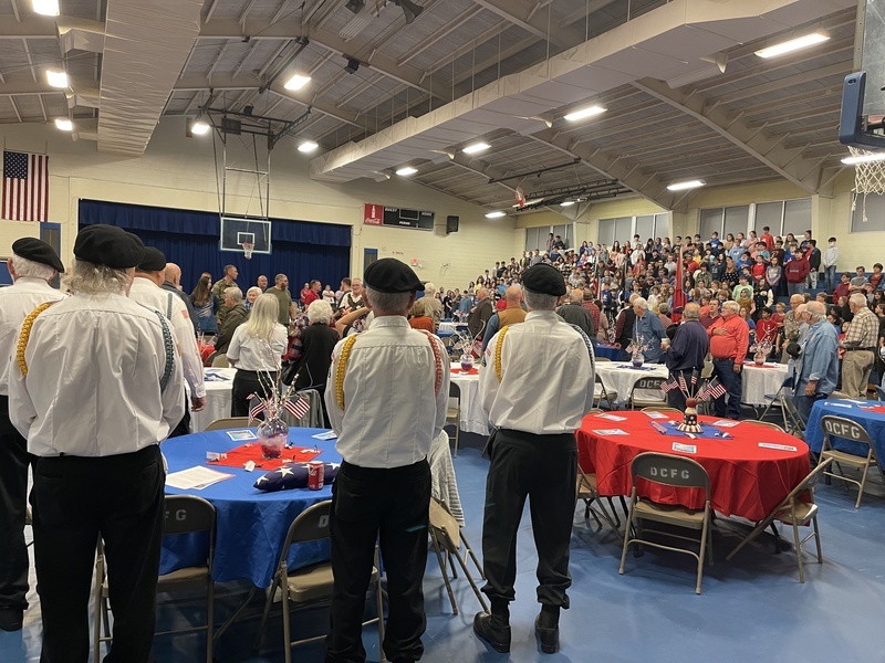 Friday, November 11th, 2022, was the first year since 2019 that Decatur County Middle School was able to host its annual Veterans' Day Program. "We have really missed hosting all of the veterans and recognizing them for what they did the past few years," said Keith Walker, Principal at DCMS. Covid has kept DCMS from hosting this annual event so this year they worked really hard to put on a special program. Mrs. Amanda Salas, guidance counselor at DCMS is in charge of the student council, and these students and their sponsor planned and coordinated the entire program. Veterans were brought in at 9:30 while the entire student body and staff of DCMS gave them a standing ovation and welcomed them into the gym. Veterans were also honored by the student council with a recognition of their name and branch of service and were given a special certificate to commemorate this day and the veterans were provided with a sit down meal.